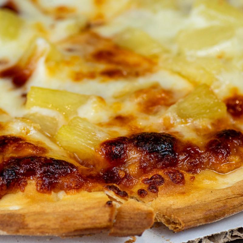 Made with our sweet sauce, but can be substituted. Please allow 40 min. cooking time • Pizza Sauces: Pizza Sauce | Sweet Sauce | Olive Oil | BBQ Sauce | Buffalo • Toppings: Anchovies* | Bacon | Bacon Bits | Basil | Black Olives | Canadian Bacon* | Chicken* | Extra Cheese | Extra Sauce | Fresh Garlic | Fresh Tomato | Green Olives | Green Pepper | Hamburger | Hot Giardiniera | Italian Beef* | Jalapeno | Mushrooms | Onions | Pepperoni | Pineapple | Sausage | Spinach (*Ingredients are at additional cost)