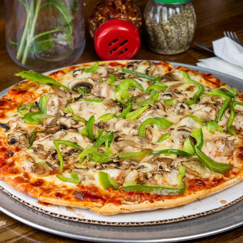 14", 16", 18" | Thin, Regular, Thick, Pan & Stuffed Crust | Additional Cost • Pizza Sauces: Pizza Sauce | Sweet Sauce | Olive Oil | BBQ Sauce | Buffalo • Toppings: Anchovies* | Bacon | Bacon Bits | Basil | Black Olives | Canadian Bacon* | Chicken* | Extra Cheese | Extra Sauce | Fresh Garlic | Fresh Tomato | Green Olives | Green Pepper | Hamburger | Hot Giardiniera | Italian Beef* | Jalapeno | Mushrooms | Onions | Pepperoni | Pineapple | Sausage | Spinach (*Ingredients are at additional cost)